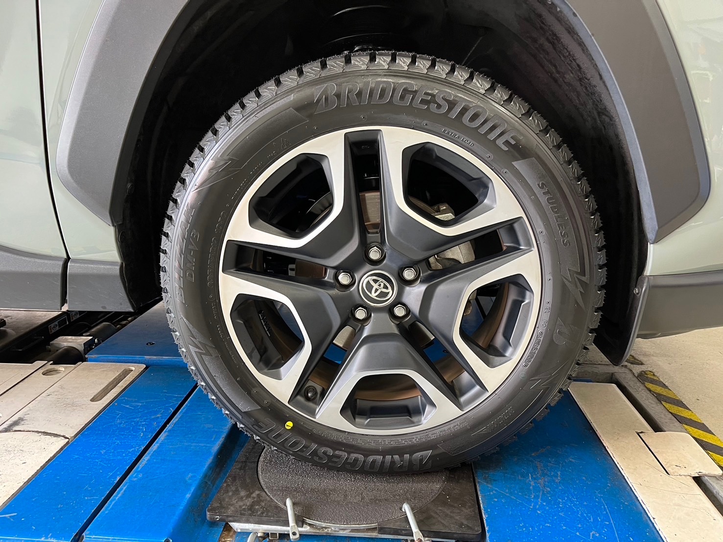 今回はこちらにスタッドレスタイヤを装着させていただきました!