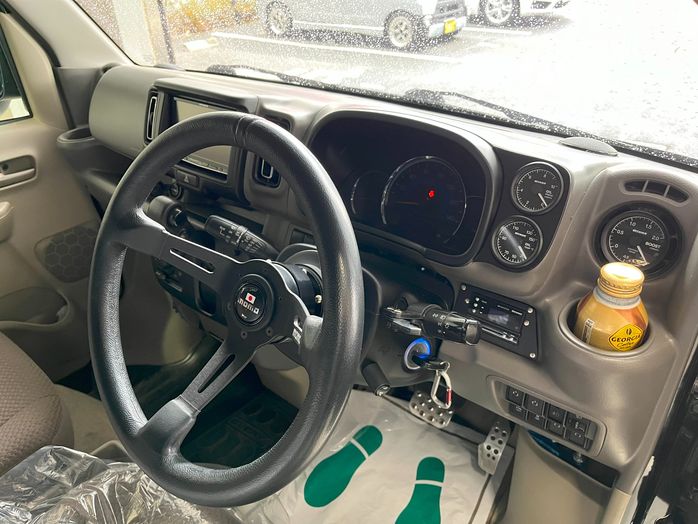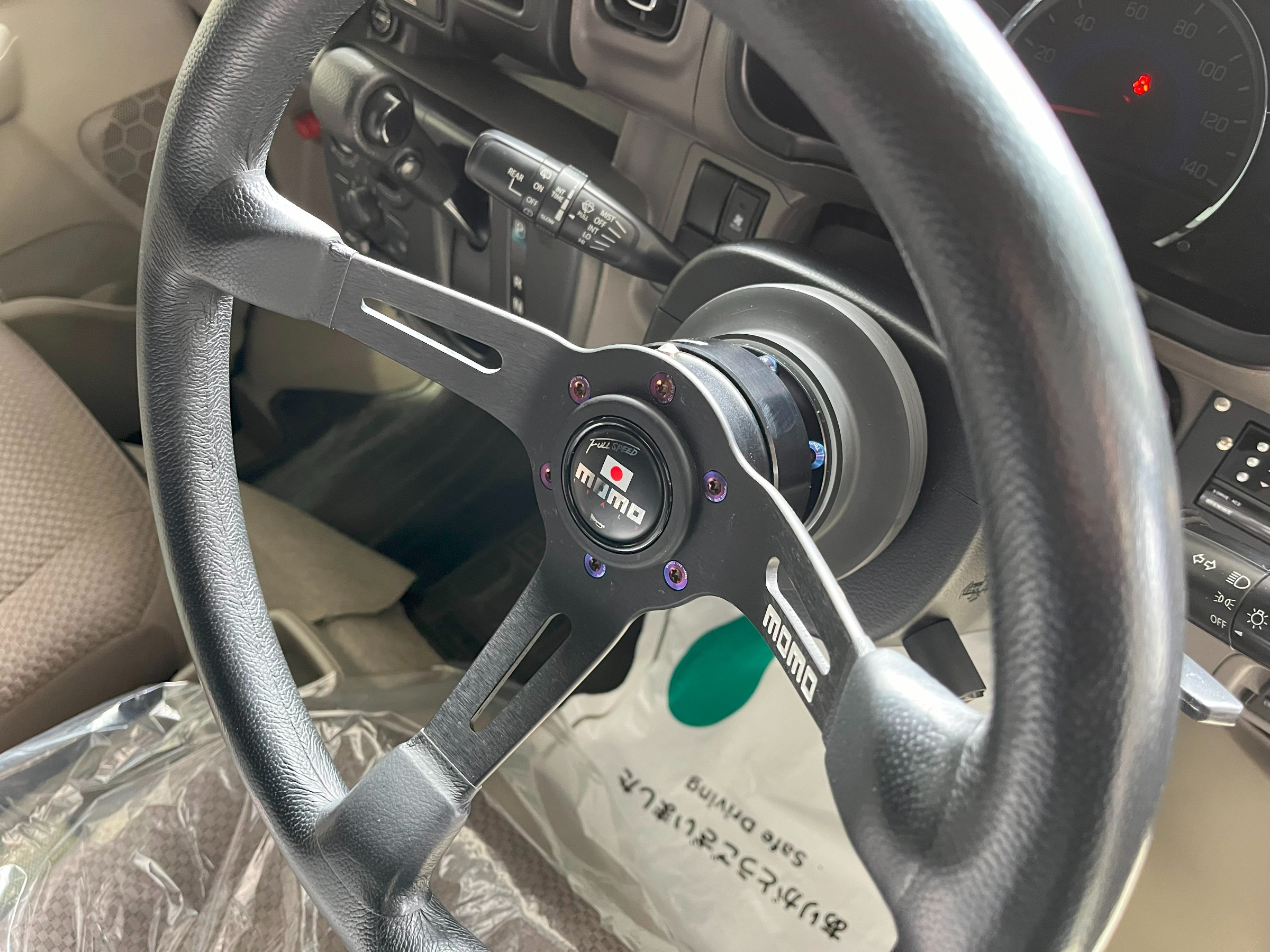 社外ステアリングは固定部分が