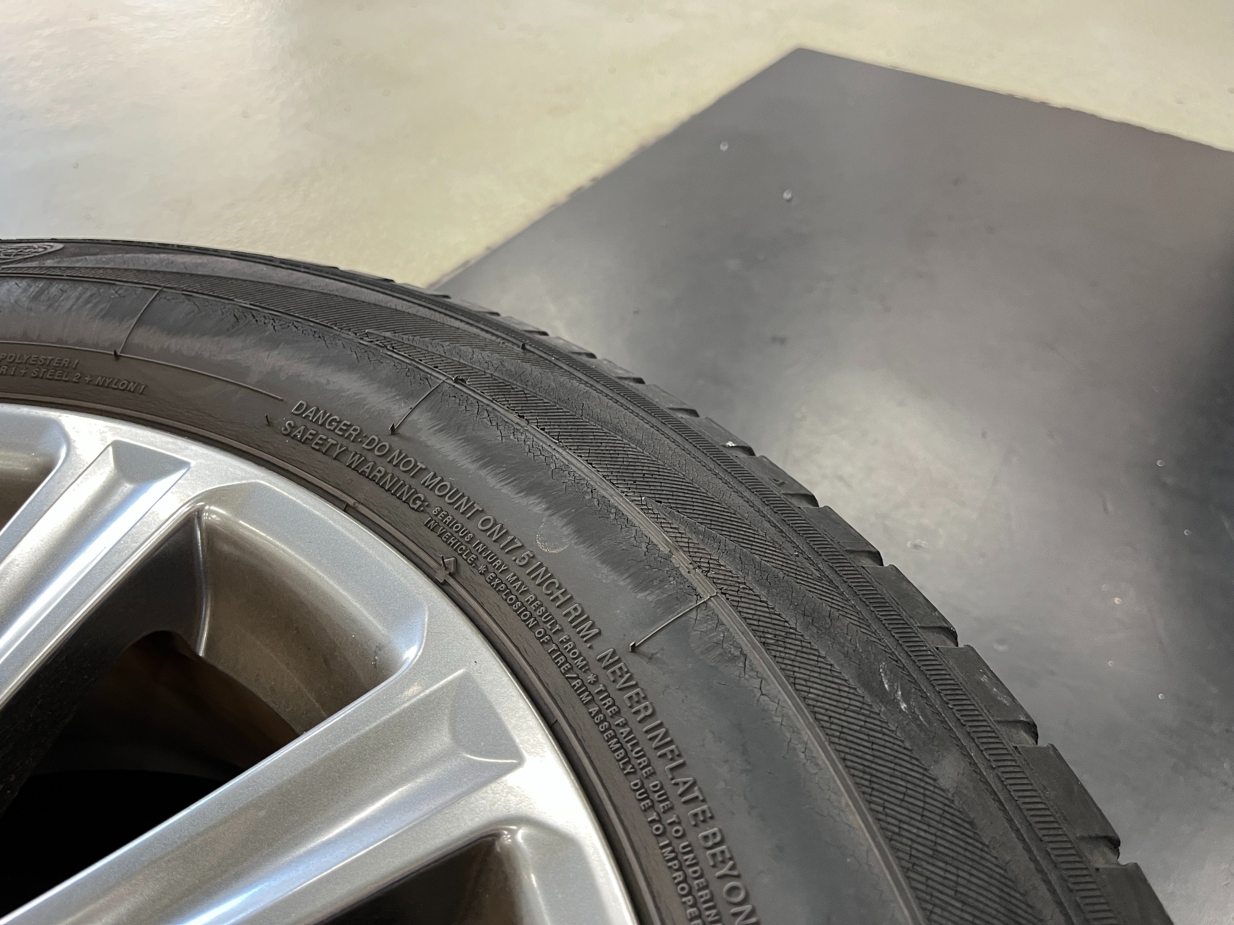 交換前のタイヤはひび割れの進行があり
