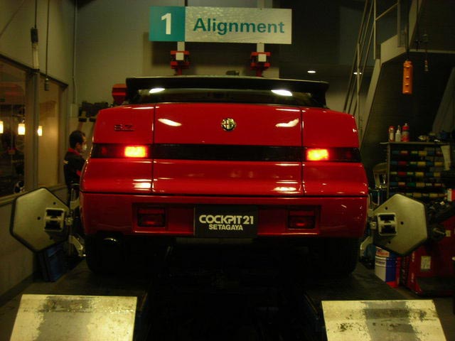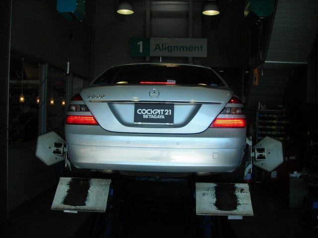 アライメント作業のお問い合わせが多いので再度ご報告です。アライメントについてご存じない方も少なからずいらっしゃると思うのですが、簡単にご説明致します。アライメントとはタイヤの整列の事を言います。タイヤには色々な角度が付いており、車高を下げたり縁石に衝突したりすると角度が変わる為、タイヤが偏摩耗したりステアリングがズレたりします。これを治すのがアライメント調整と言われるもので、車検の時に行うサイドスリップとは別のものとお考え下さい。アライメント調整ですが、基本はメーカーの定める数値に合わせて車体の調整機構を使い基準値にして行く作業を実施しますが、お客様の走り方によってお好みに調整する事も可能です。通常の走行においてもズレが発生する場合があるので、定期的に測定だけでもする事をお勧め致します。当店では予約制にて承っておりますので、お気軽にご相談下さいませ。今日は最近行ったアライメント調整風景をUP致します。