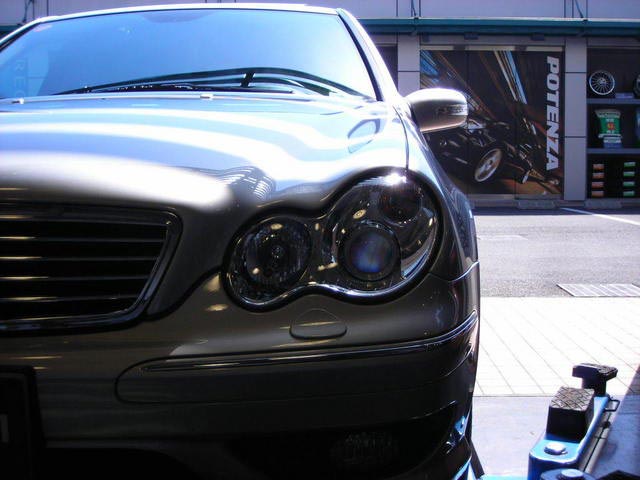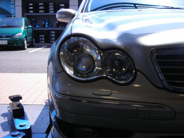 Cクラス(前期)に後期ヘッドランプ取付です! 前期のレンズカットは車が古く見えてしまったり、プラスチックが曇って色が褪せてきますので、後期レンズに交換をお勧めします。これだけで大分雰囲気が変わりますよ!! 後期は、プロジェクタ-仕様になるので視認性向上も期待出来ます。