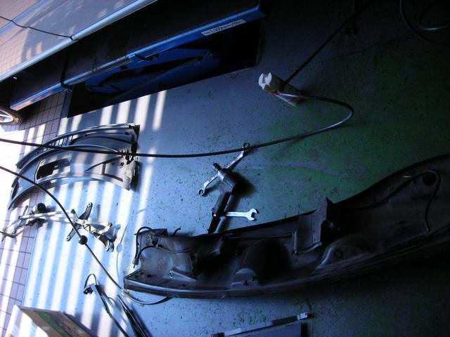 画像3 結構バラバラにしました。本当は、ワイパーモーター等は外さずに出来ますが、アッパーマウントを確実に抑える為に全て外しました。