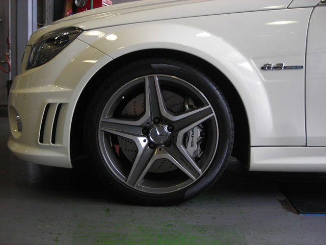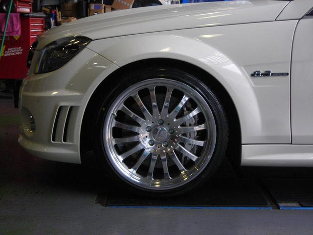 C63 AMGにカールソン・ウルトラライト取付です。ノーマルは18インチを装着でしたが、タイヤが無くなる序に、19インチへインチUP致しました。アルミの外観・重さを考慮するとやはりウルトラライト(鍛造)が一番ですね! 組み合わされるタイヤは、もちろんPOTENZA RE050になります。W204型Cクラスには19インチ辺りが一番似合います。車高はノーマルでもカッコイイですね! プレミアムホイール・ウルトラライト如何ですか? 詳細はオーナーズカーにてご報告致します。