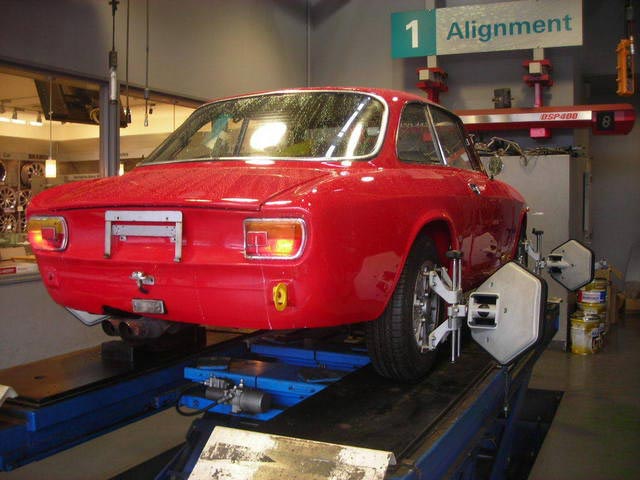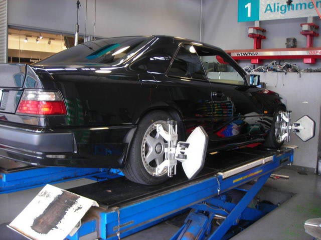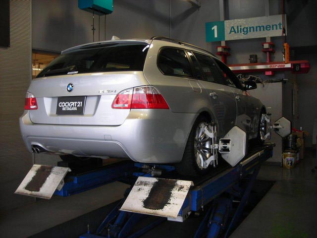 今日はアライメントについてです。アライメントについてご存じない方も少なからずいらっしゃると思うのですが、簡単にご説明致します。アライメントとはタイヤの整列の事を言います。タイヤには色々な角度が付いており、車高を下げたり縁石に衝突したりすると角度が変わる為、タイヤが偏摩耗したりステアリングがズレたりします。これを治すのがアライメント調整と言われるもので、車検の時に行うサイドスリップとは別のものとお考え下さい。アライメント調整ですが、基本はメーカーの定める数値に合わせて車体の調整機構を使い基準値にして行く作業を実施しますが、お客様の走り方によってお好みに調整する事も可能です。通常の走行においてもズレが発生する場合があるので、定期的に測定だけでもする事をお勧め致します。当店では予約制にて承っておりますので、お気軽にご相談下さいませ。今日は最近行ったアライメント調整風景をUP致します。