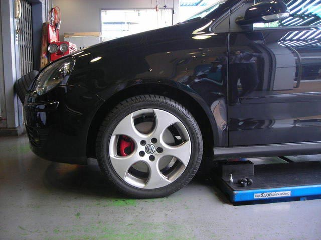 最近、AUDIやVWの入庫率が高いのですが、POLOは初UPです。今回は、純正16インチから1インチUPの17インチを装着です。元々、GTI専用でのアルミの種類がちょっと少ないのが難点でしたが、スポーティー性の高いOZを装着致しました。円周に向かう細いスポークがレーシングを演出してくれます。タイヤはPOTENZAのRE050を装着です。後ほど、H&R(GTI専用)ダウンスプリングを装着予定です。