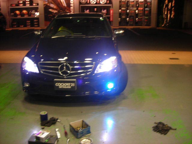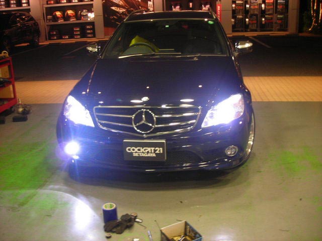 いつもお世話になっているW204のお客様が本日はフォグキセノン・ヘッドライトバルブ・ナンバー灯の交換でいらっしゃいました。