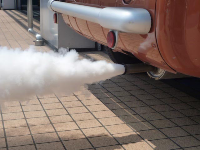 画像1 施工直後はマフラーから大量の白煙が出ます。