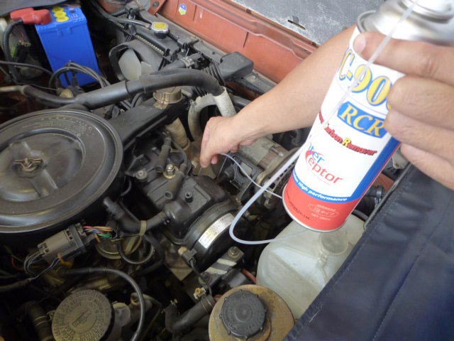 NC120をバキュームホースから吹き込み、まずはインジェクションを洗浄