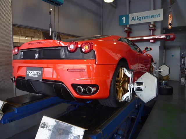 今日は・・Ferrari F430 のアライメント調整、オイル交換作業を