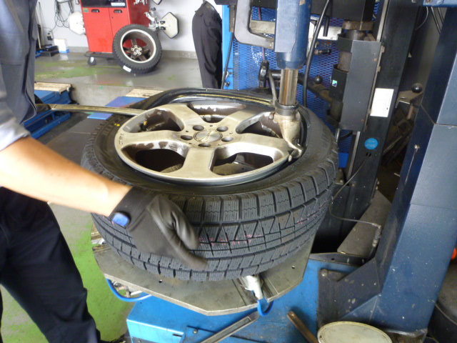 本日は当店でタイヤクロークシステムをご利用頂いているお客様のスタッドレスタイヤを交換いたしました。