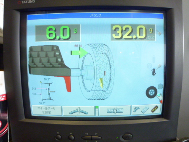 バランス調整とユニフォミティーバランス(タイヤ路面反発力の値です)を確認して装着。