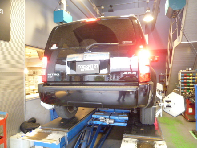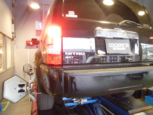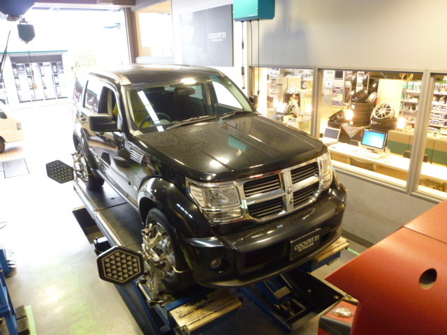 そんな中、DODGEのNITRO「ナイトロ」のアライメント調整です。