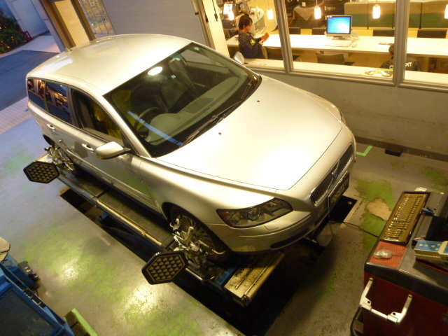 どうやら足回りを交換されたみたいで、アライメントとなりました。