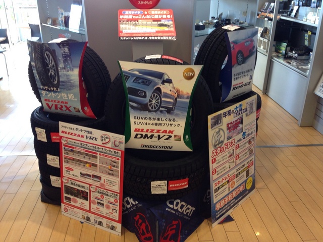 そうそう、店内にもスタッドレスを展示しました。