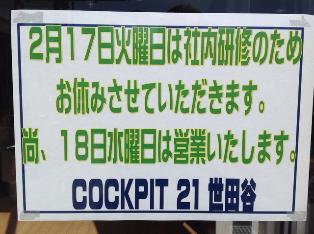 2015年2月13日 ツイート 当店は通常水曜日が定休日となりますが、17日火曜日は社内研修のためお休みさせていただきます。振替で翌18日水曜日は営業致します。ご迷惑をおかけしますが、お間違えのないようよろしくお願い致します。 Prev Next