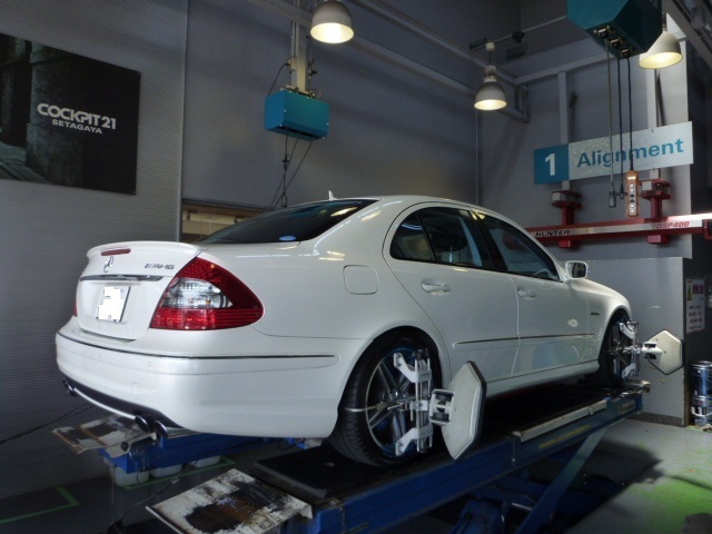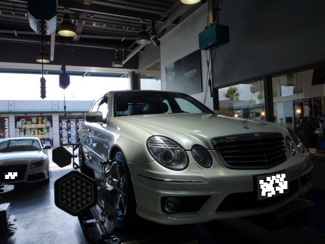 先日は W211 AMGのアライメント調整を致しました。