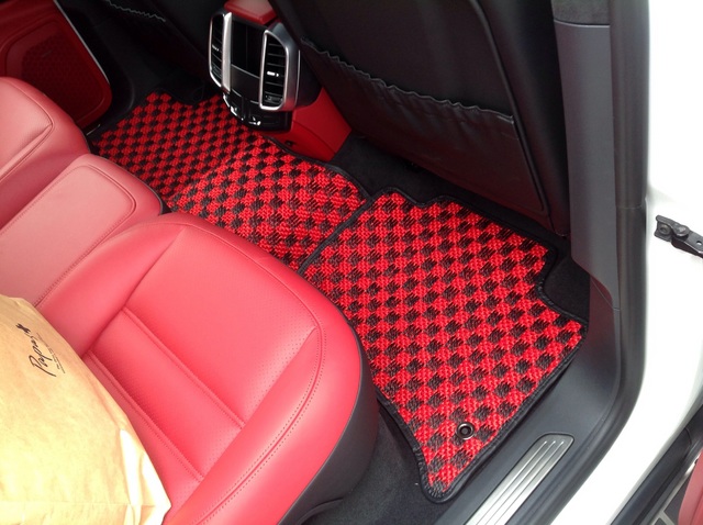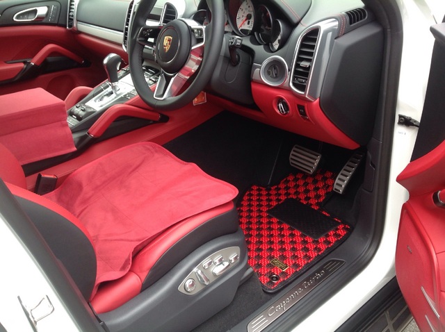 ポルシェカイエン用のKAROのフロアマットが完成→取り付けさせていただきました。