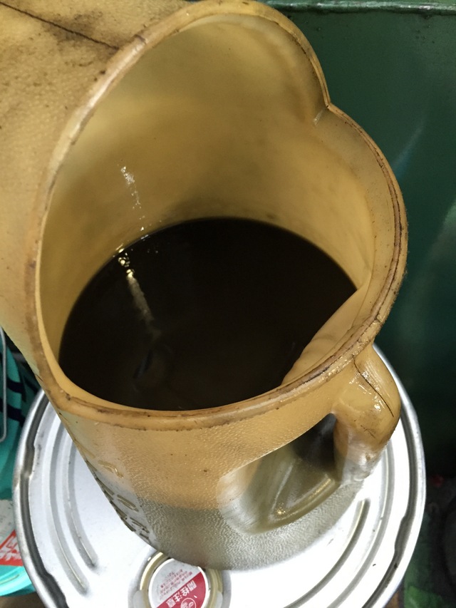 で、抜き出したATFは、煮詰まったコーヒーのような色になってしまっております。