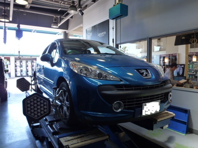 先日、プジョー207のアライメント調整をご依頼いただき施工致しました。