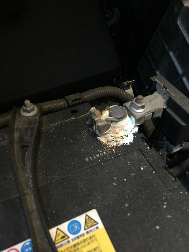 バッテリーの端子の〝白いお粉〟が沢山こびりついておりますね。
