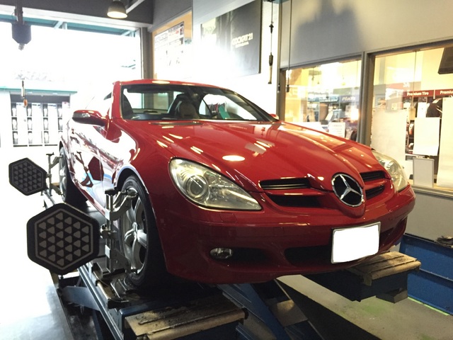 W171 SLK350のアライメント調整を承りました。
