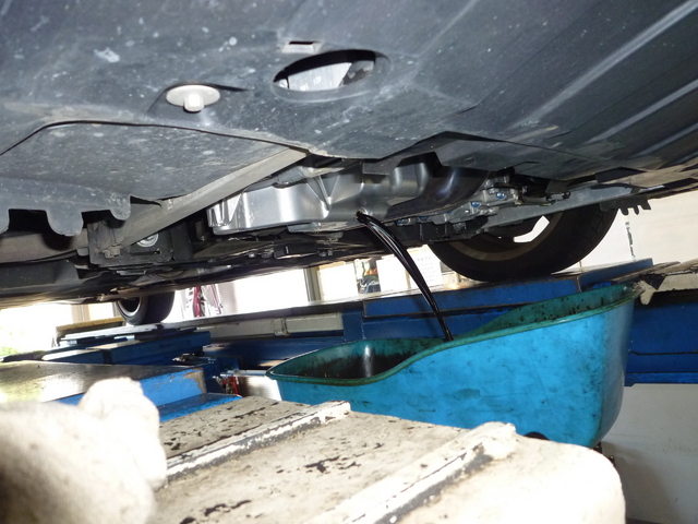 大きなアンダーカバーを外しドレンボルトより抜くという基本のやり方です。