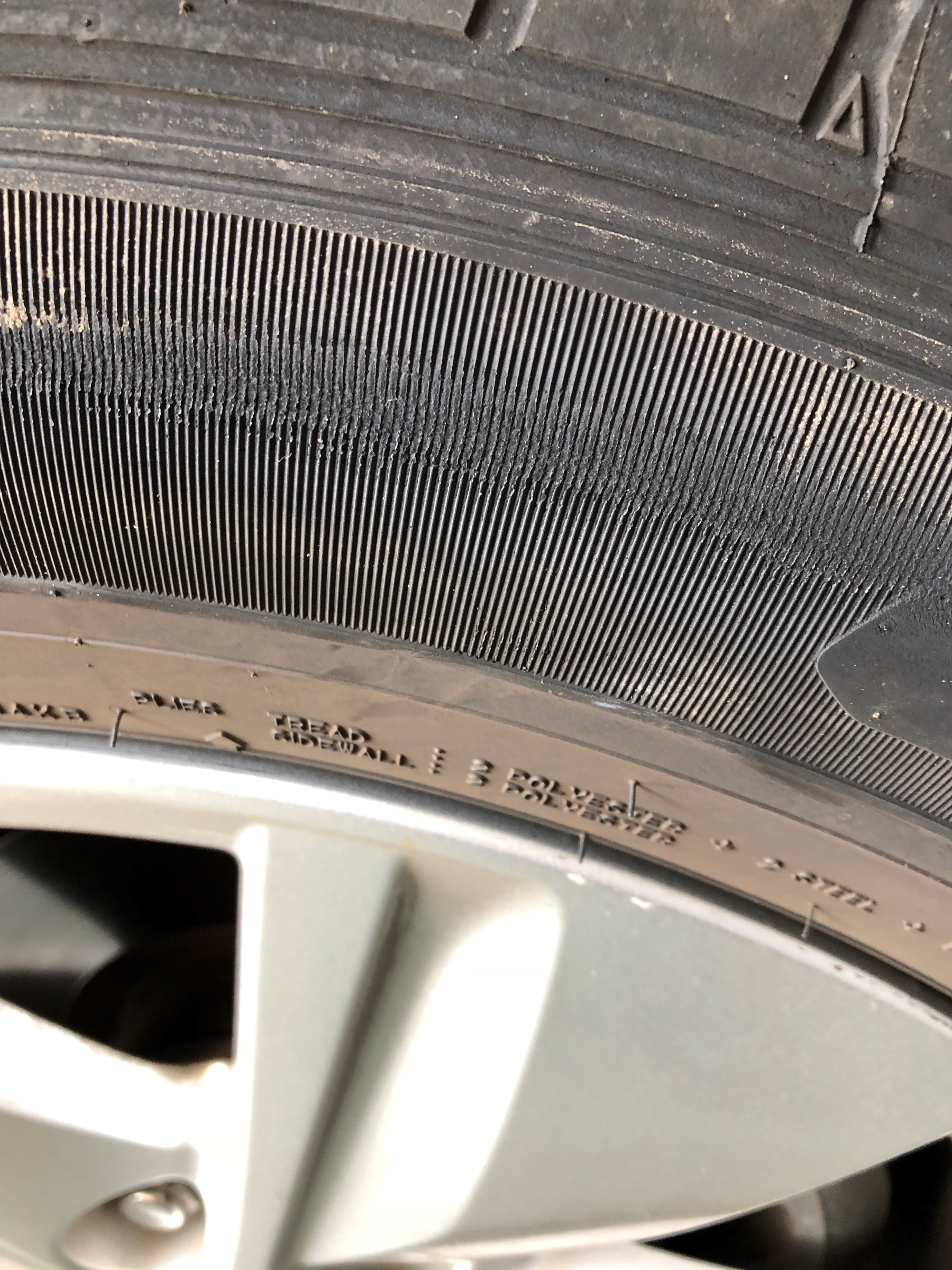 パンクして仕方なく、走って帰ってきてしまったそうで、サイド部が損傷しています。