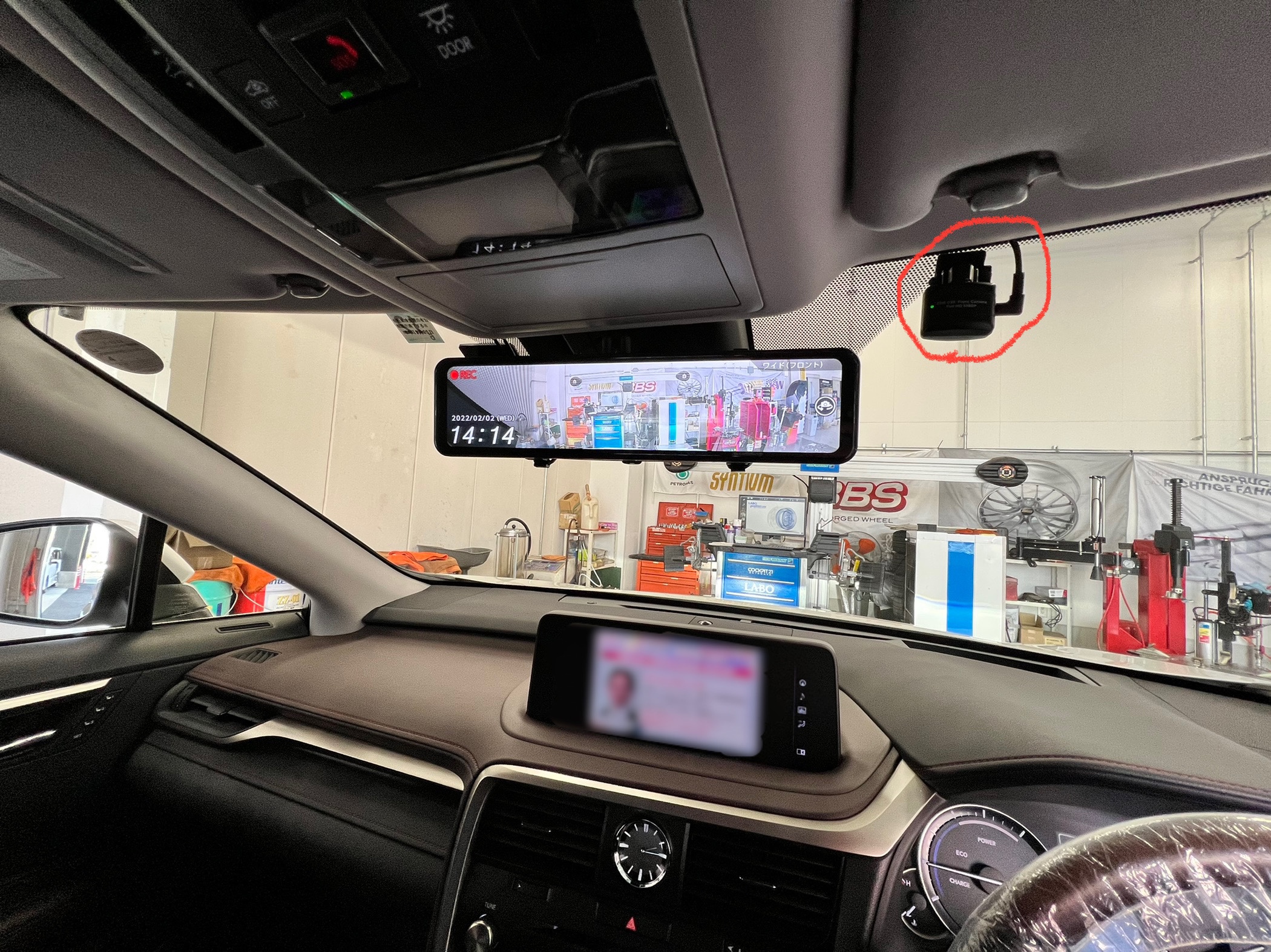 フロントカメラは運転側に施工いたしました。