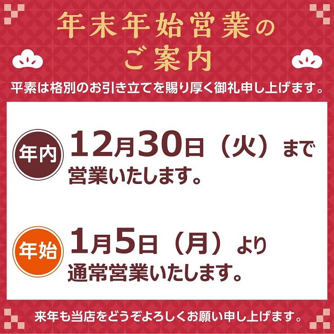 年末年始営業のお知らせ
