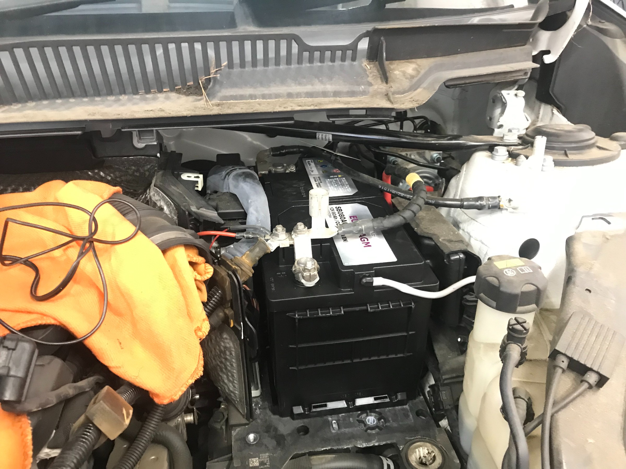 バッテリーはエンジンルームにあり、アプローチする為には外す部品が多く、少し大変です。