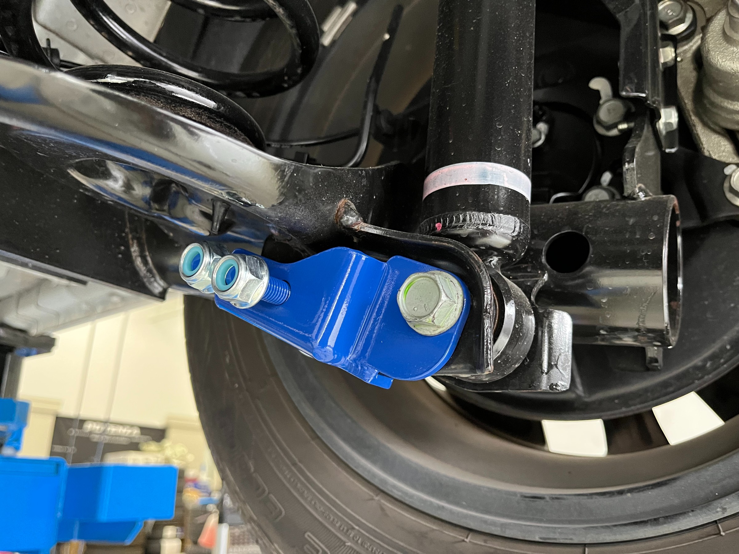 左右に伸びている青色のバーが今回お取り付けした商品です。
