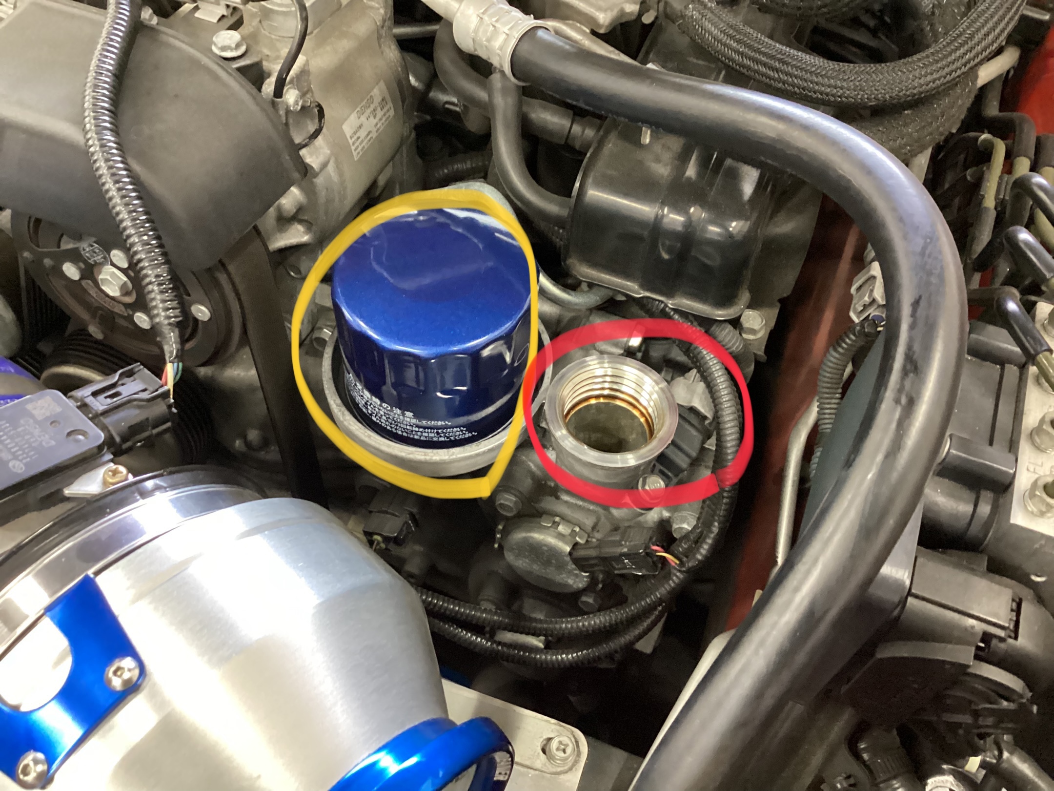 黄色がオイルフィルターです。