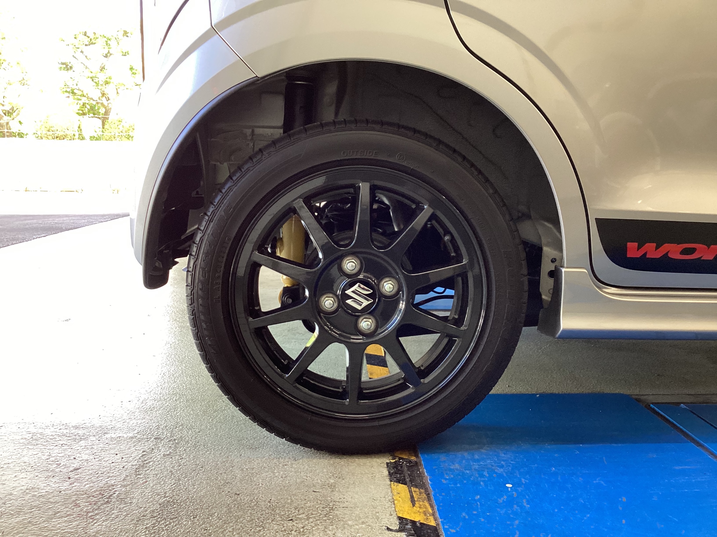 締め付けをしっかりしてタイヤを取り付けたところで