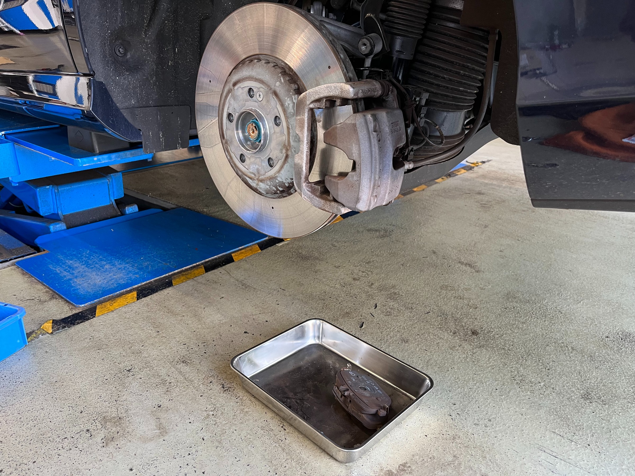 前車でのご使用でも“印象が良かったので、今回の車両も低ダストパッドに交換したい”とご依頼を受けましたE53AMGのパッド交換を紹介致します。
