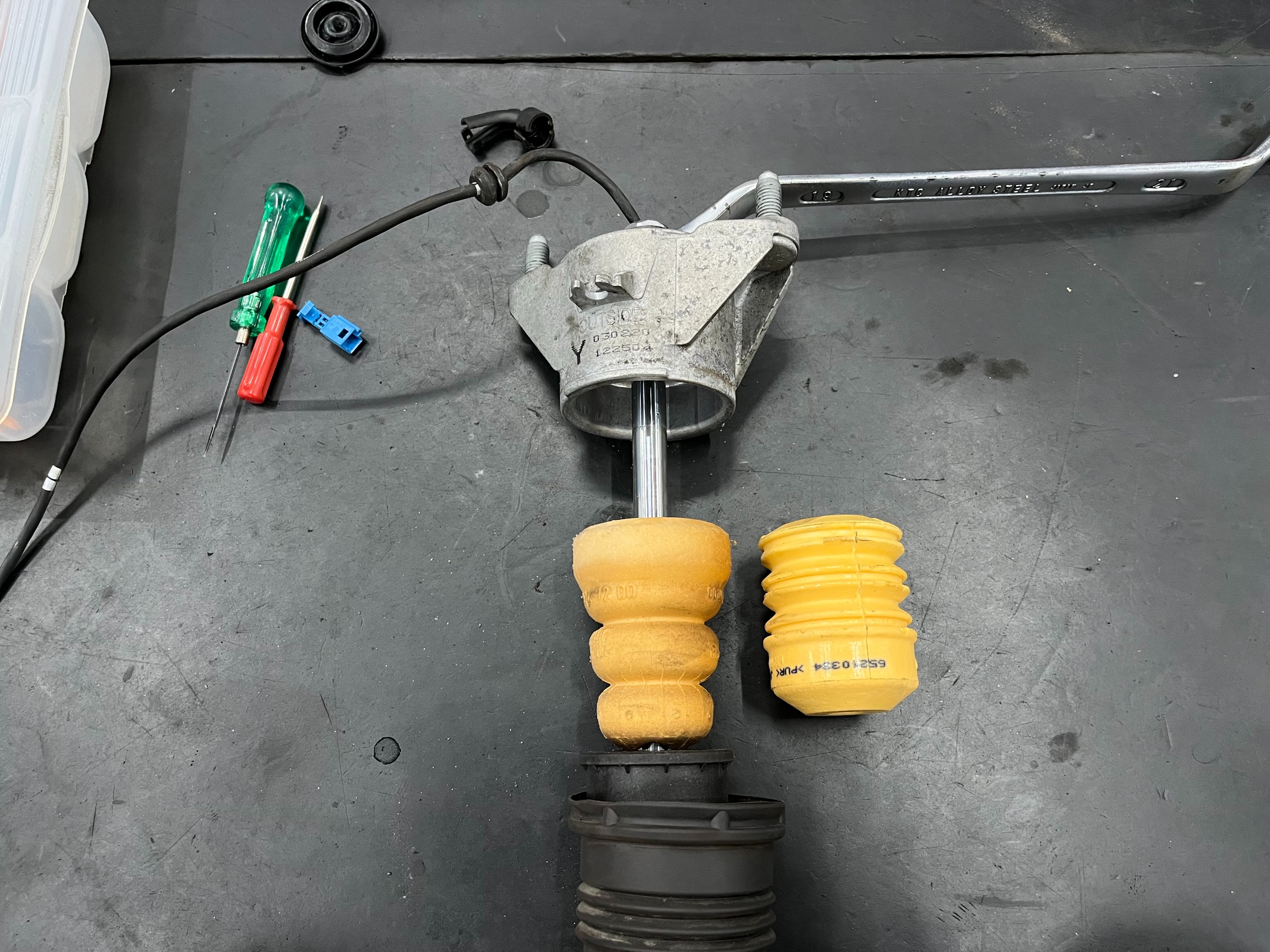 カプラーを分解し、グロメットも外してアッパーマウントを抜きます。