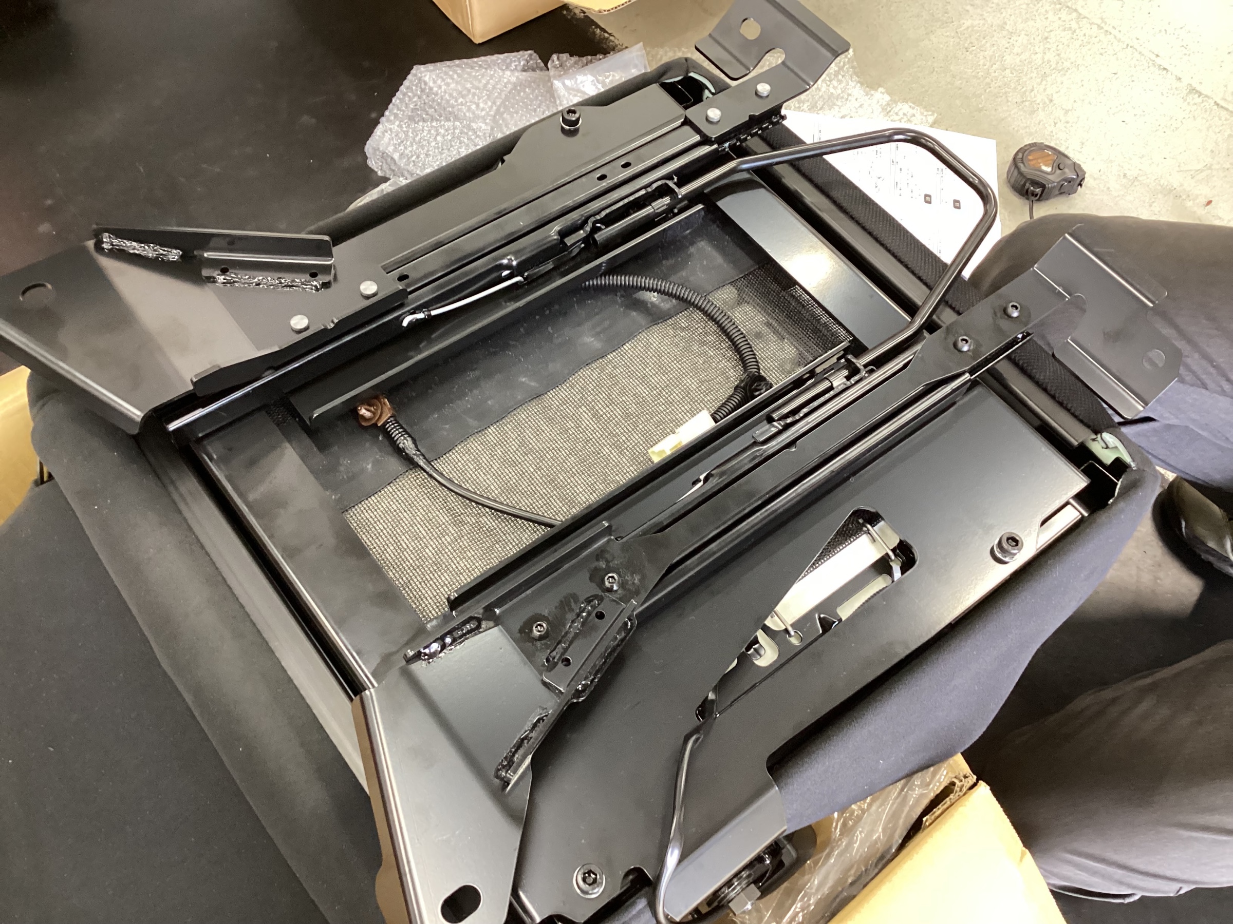 レカロシートに車種専用のベースフレームをつけ