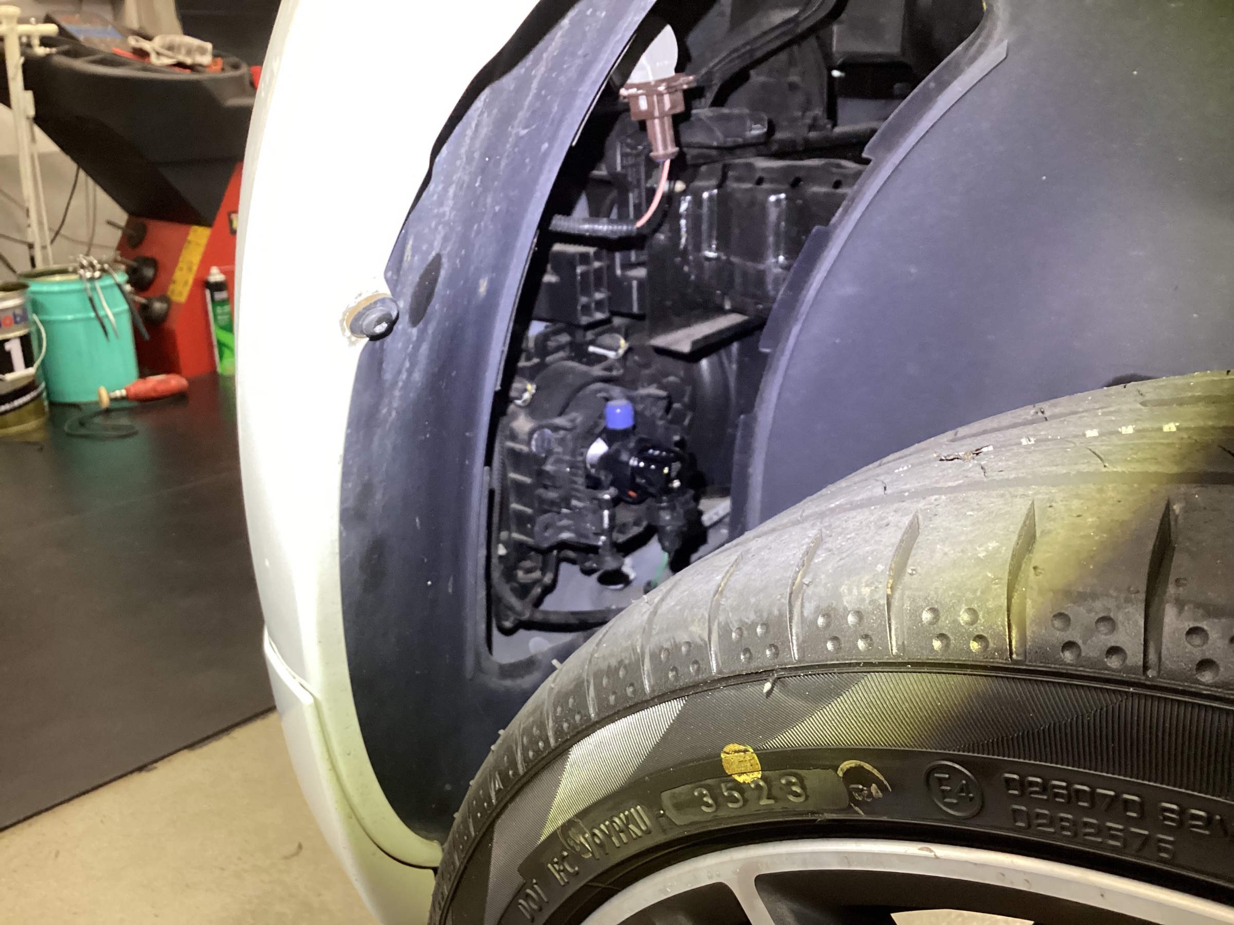 タイヤハウスのパネルを外すと出てきます。