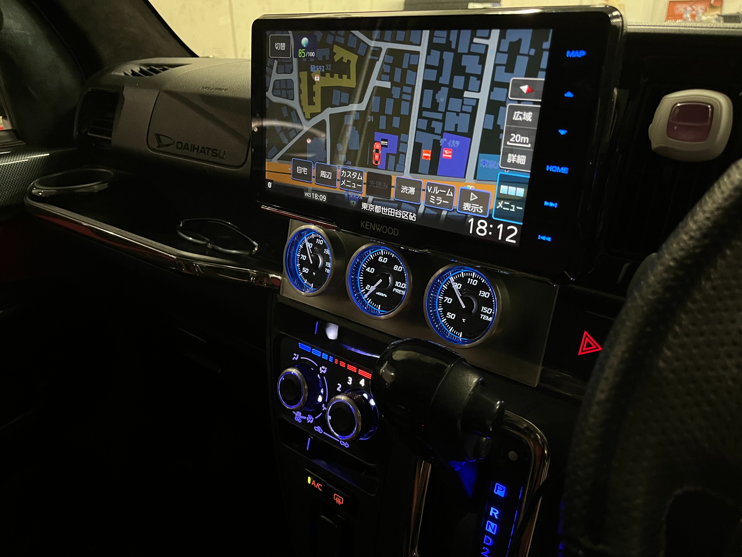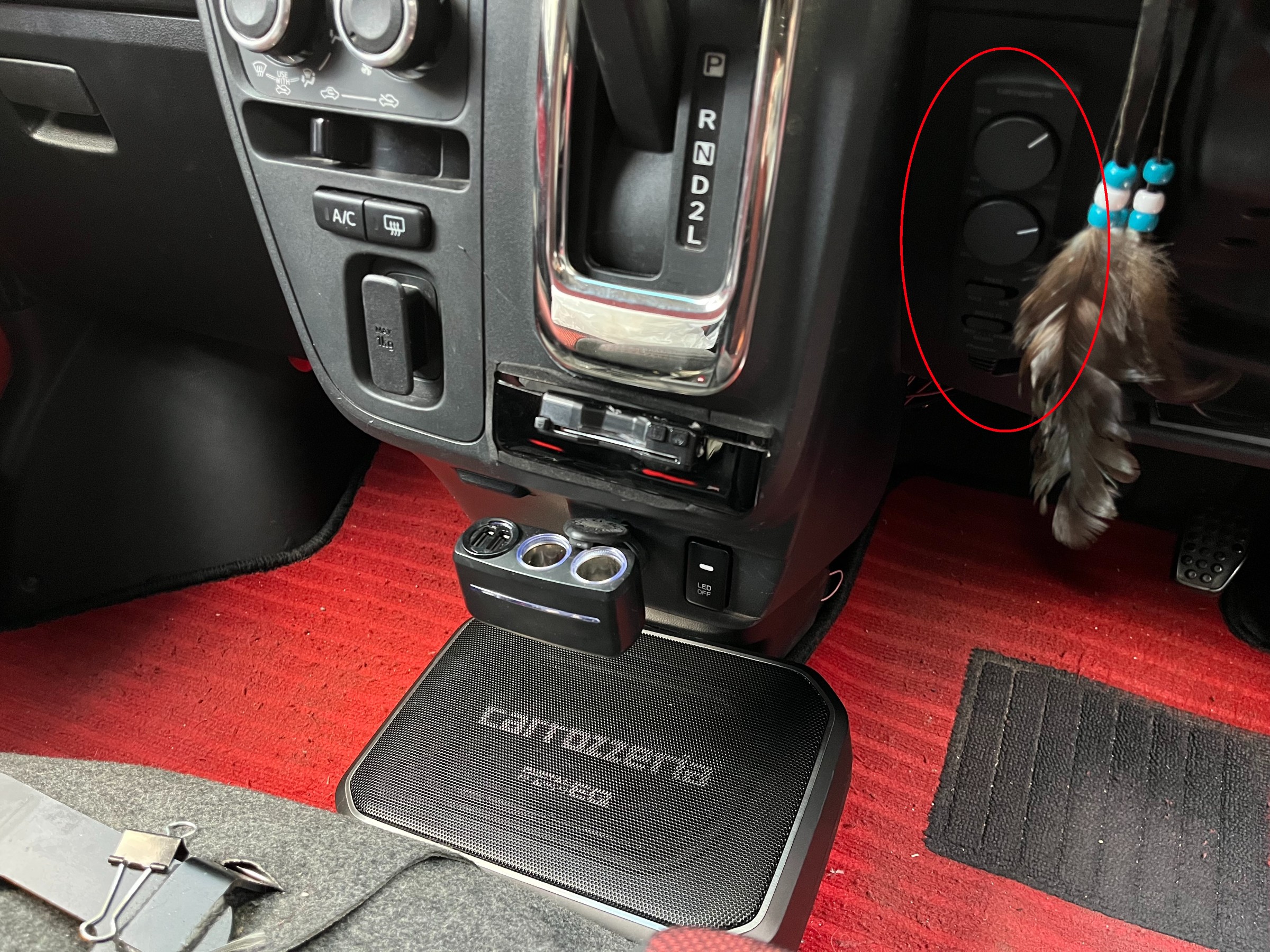 コントローラーは、運転席左ひざ上の辺りに取り付けました。