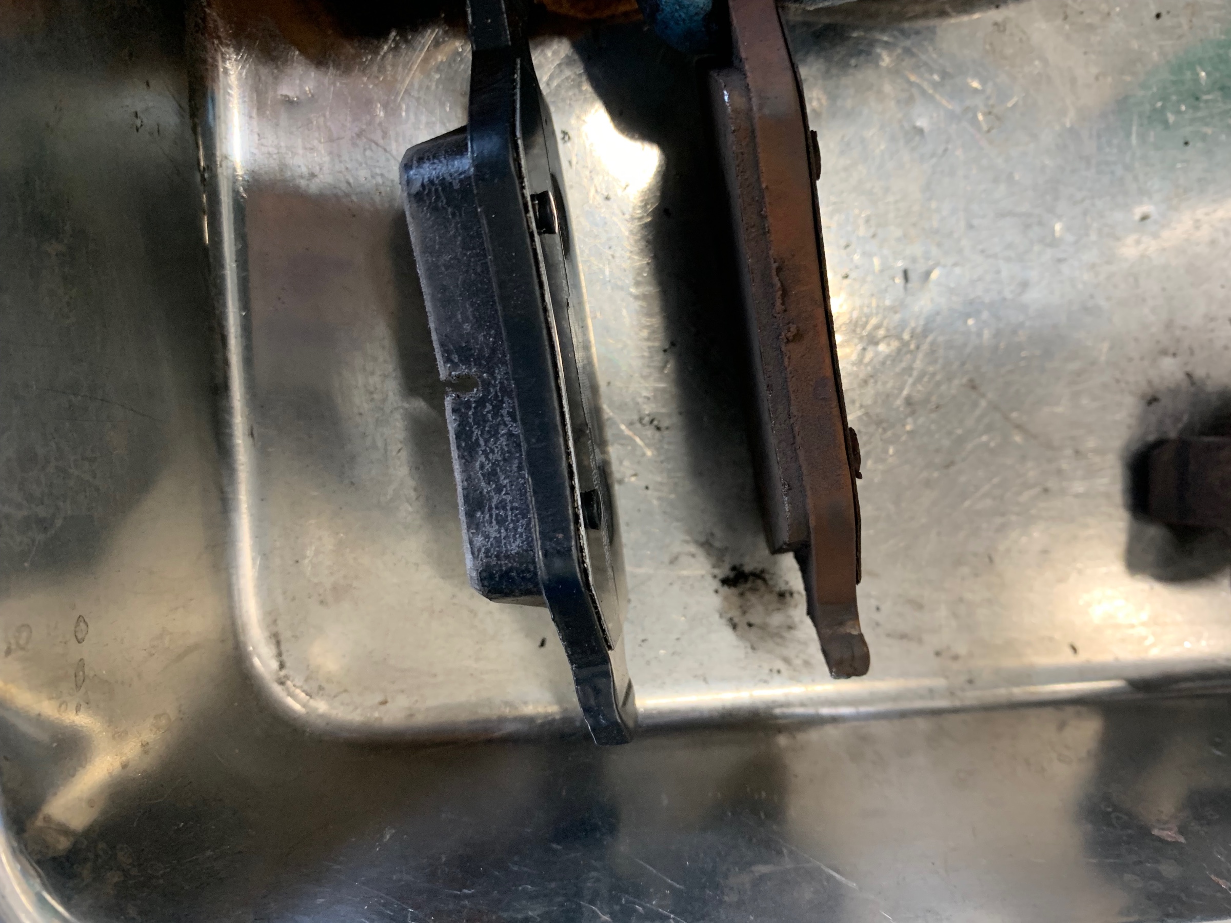 交換前のブレーキパッドはすり減っており、