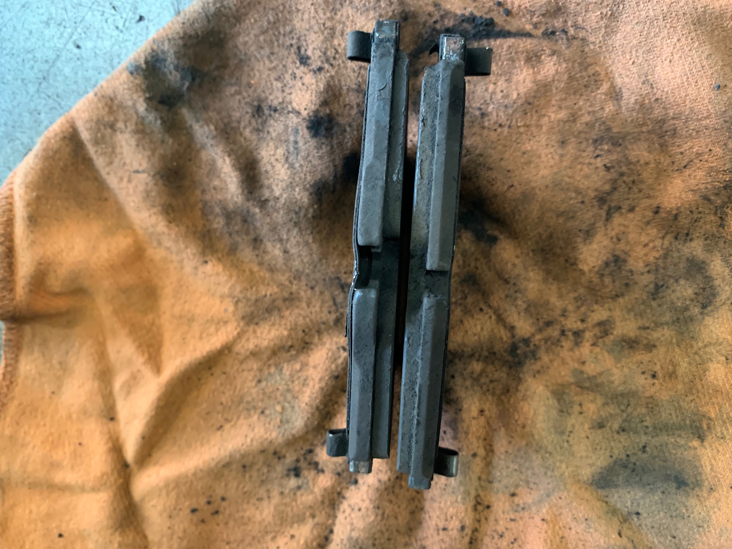 取り外した純正パッドは摩耗が進んでいました。