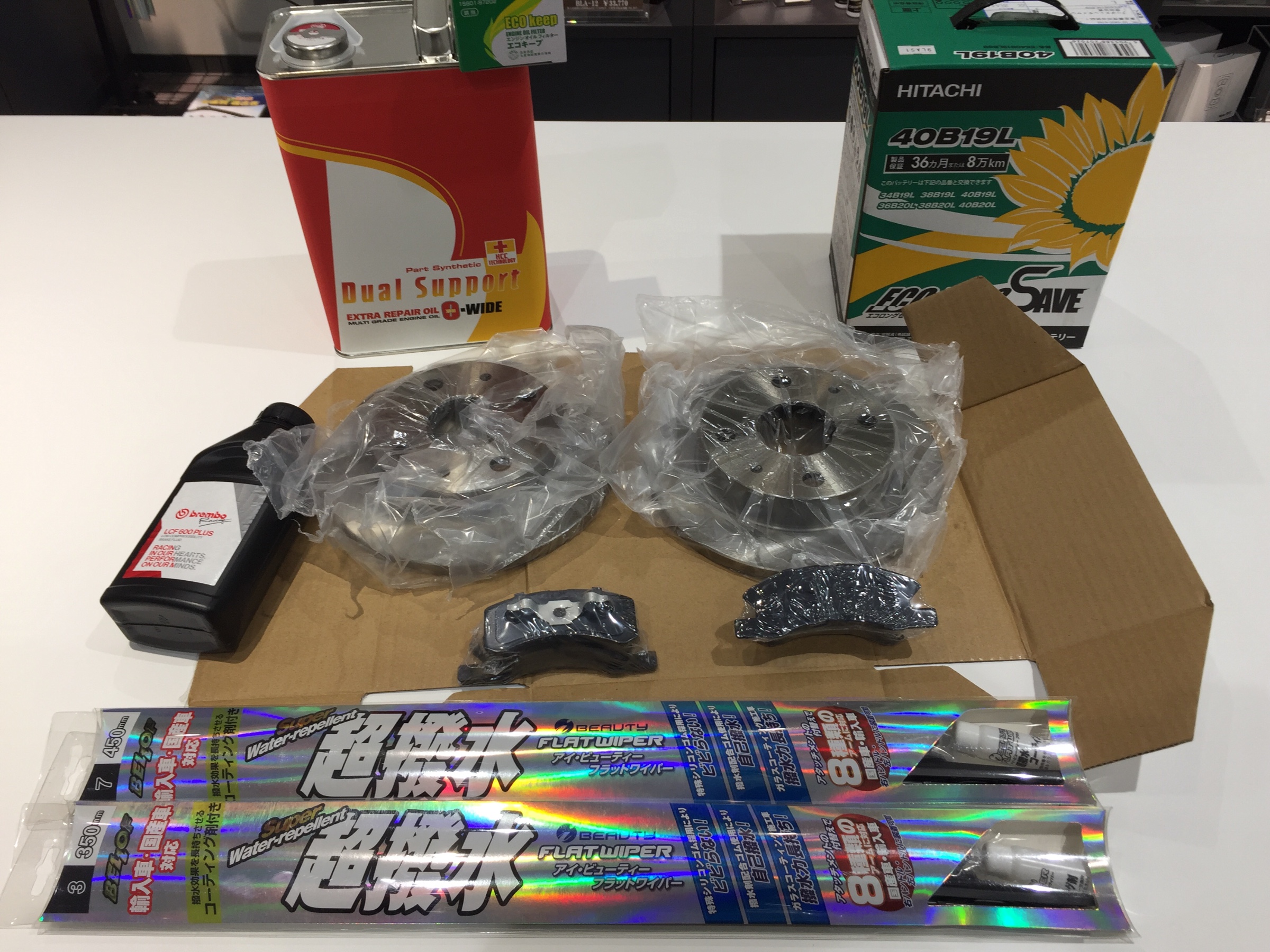 車検前点検から交換部品をご用意して、車検整備へという流れです。