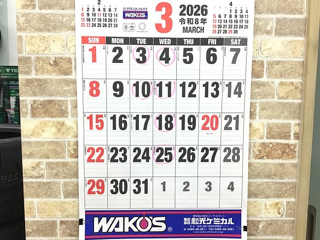 3月定休日のお知らせ