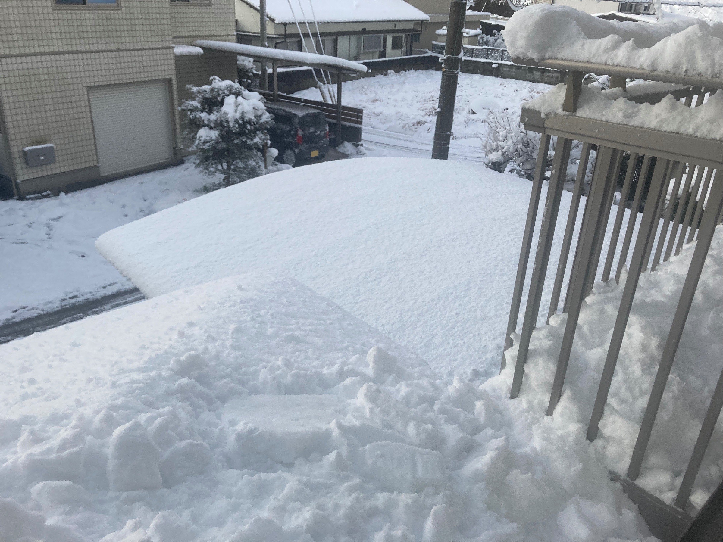 ベランダに雪がありすぎて