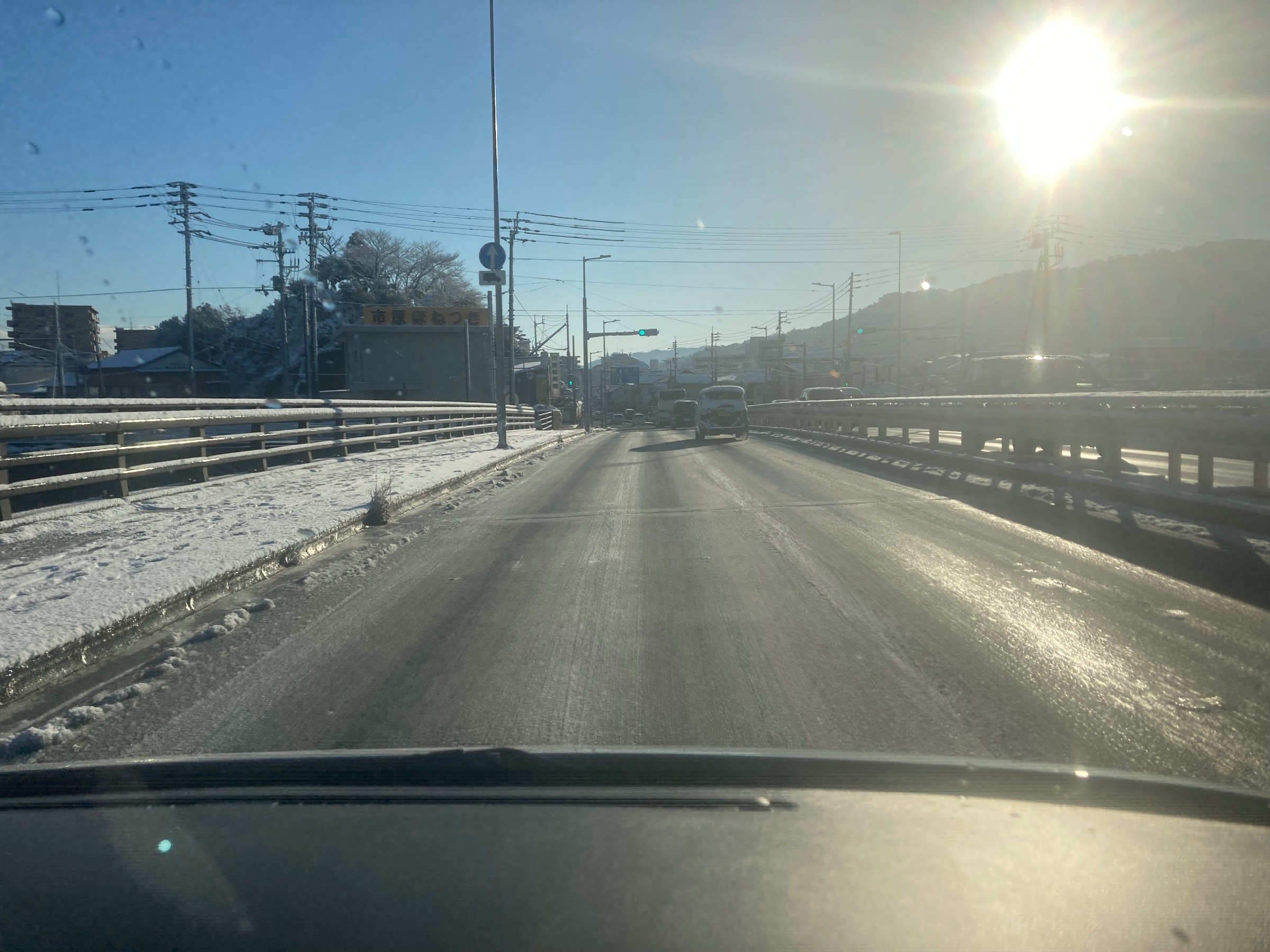 橋の上がカッチコチのアイスバーンになってたので