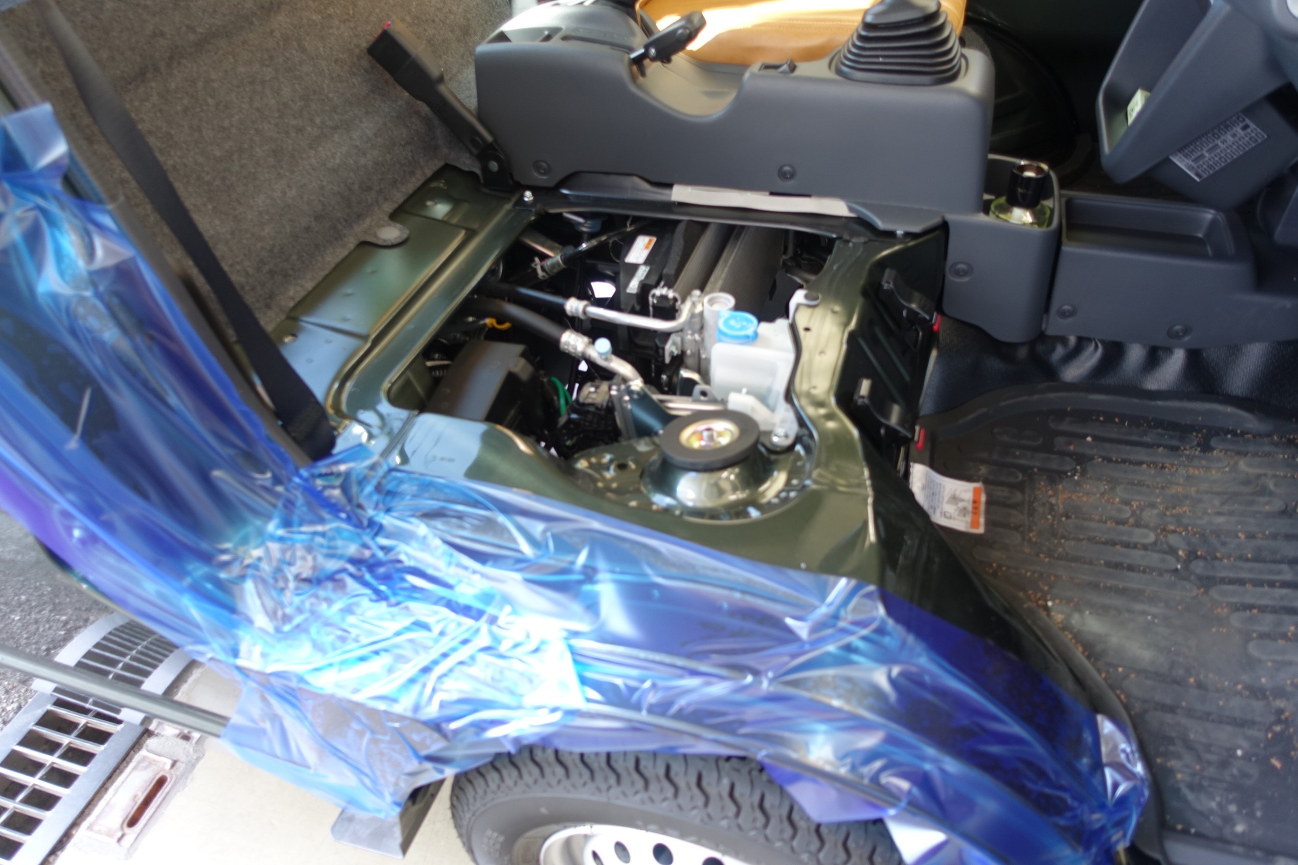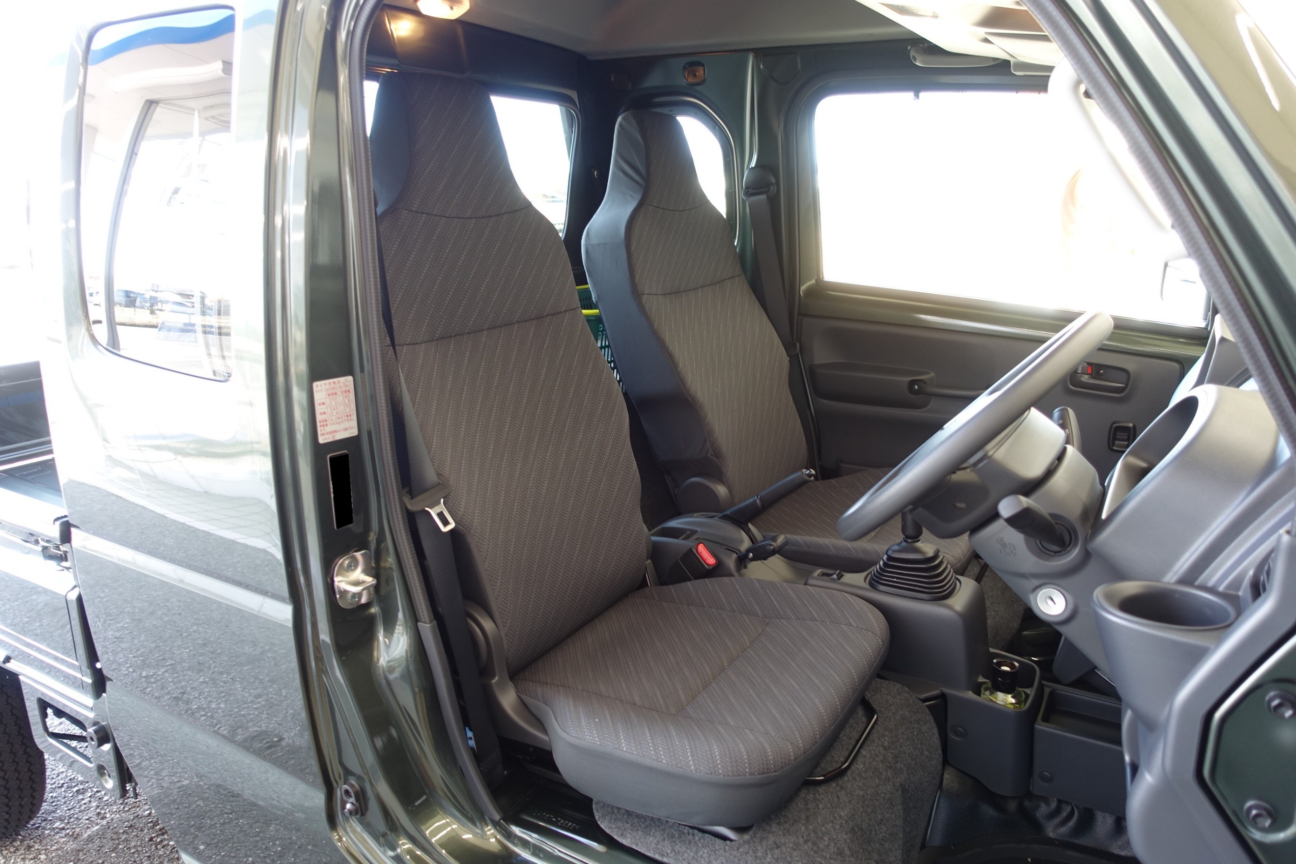お次は殺風景な軽トラの車内に