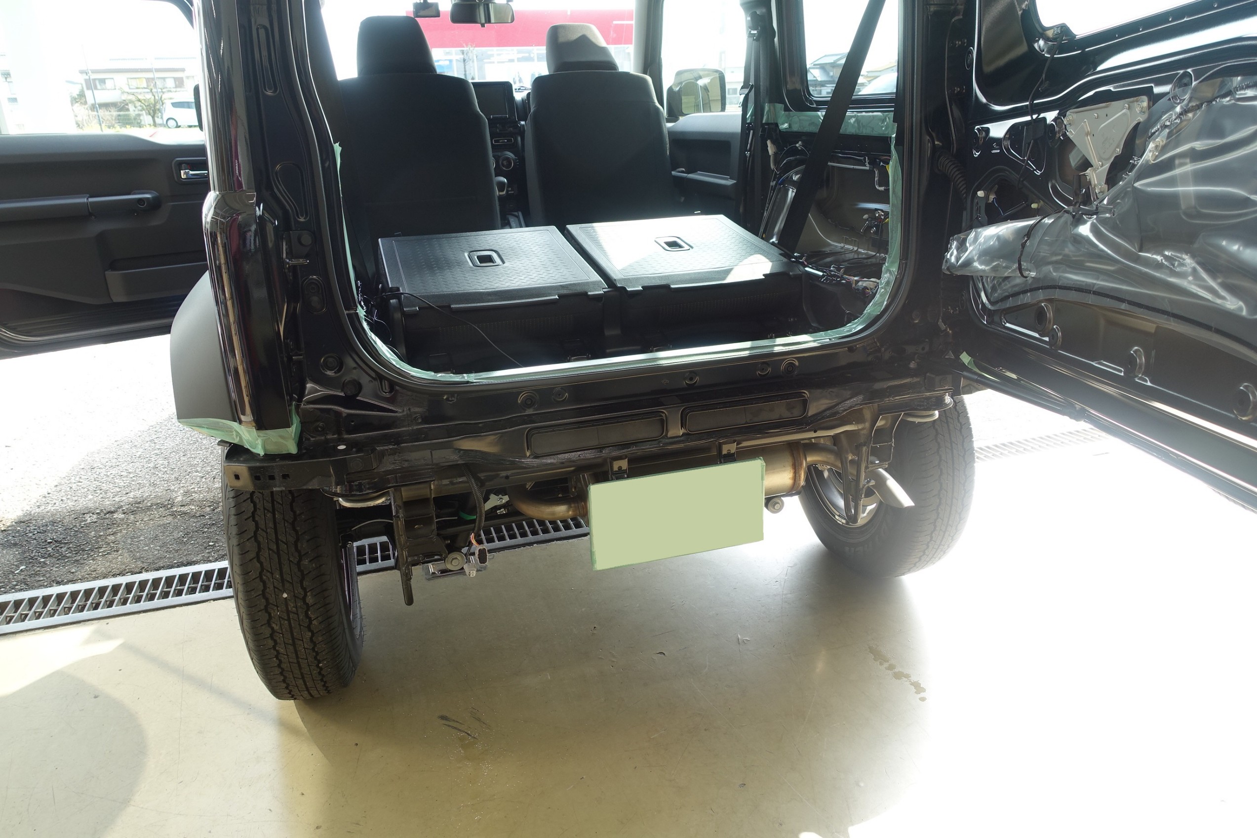 リアバンパーと内装を外して