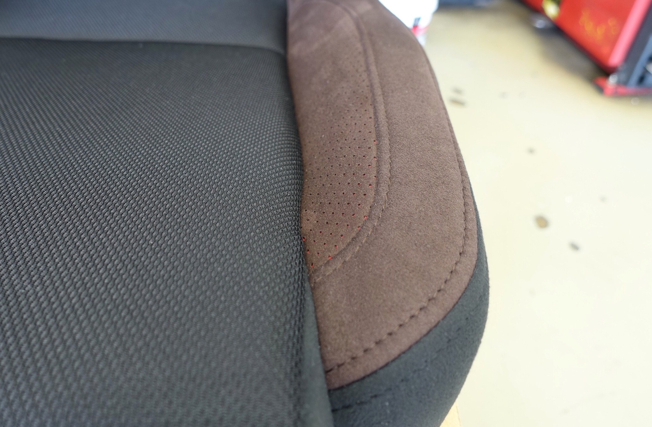 ブラウンのウルトラスエード生地を採用した