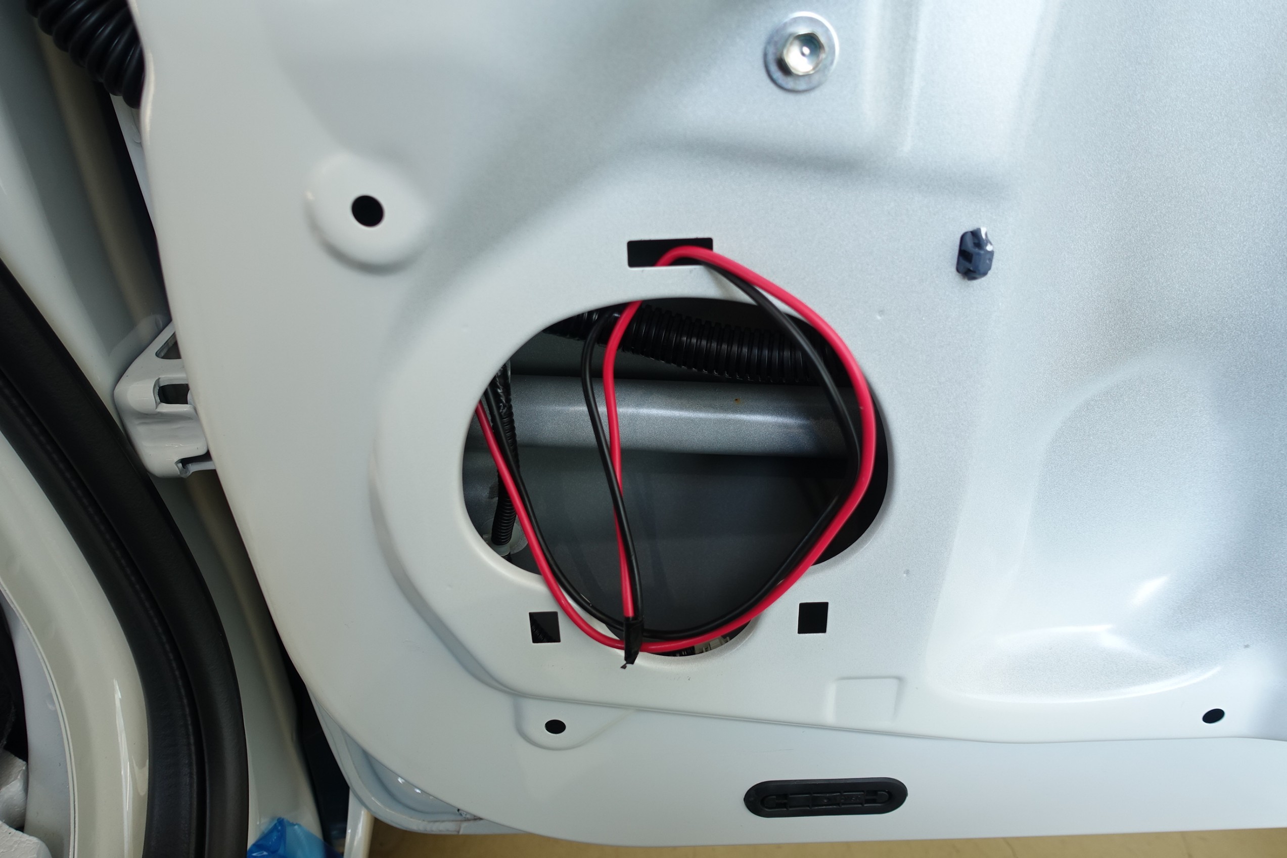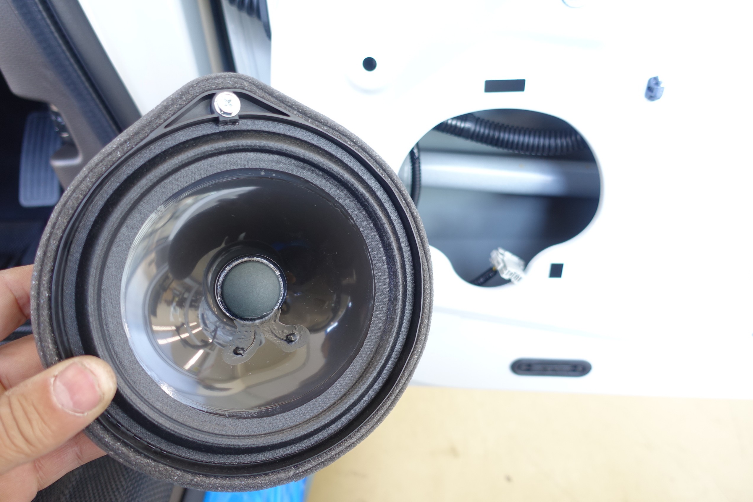 ドアにスピーカー本体を取り付け、