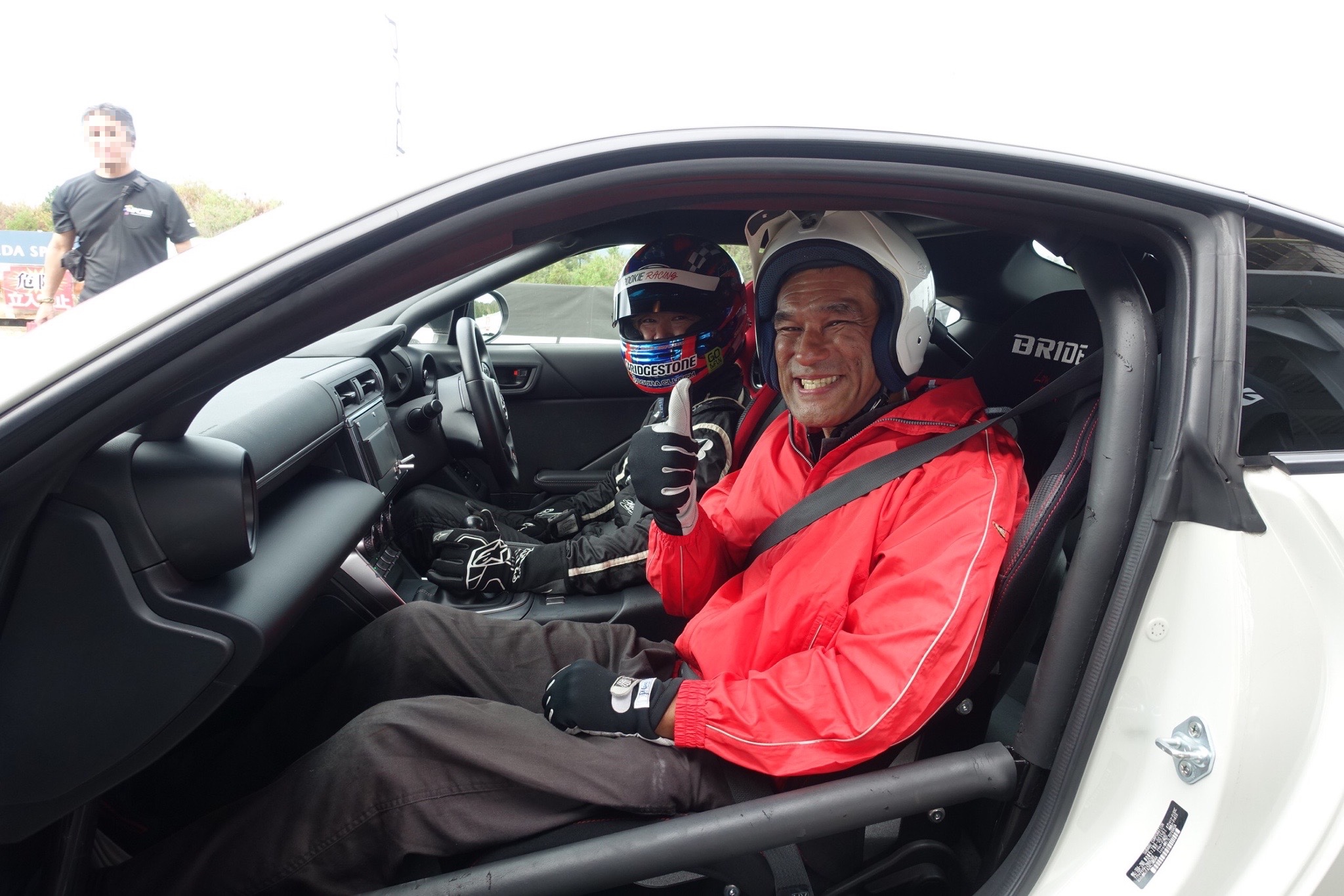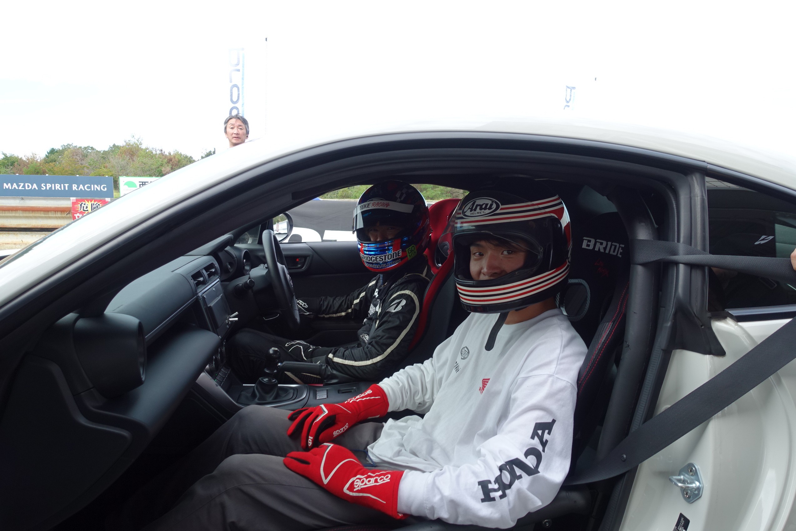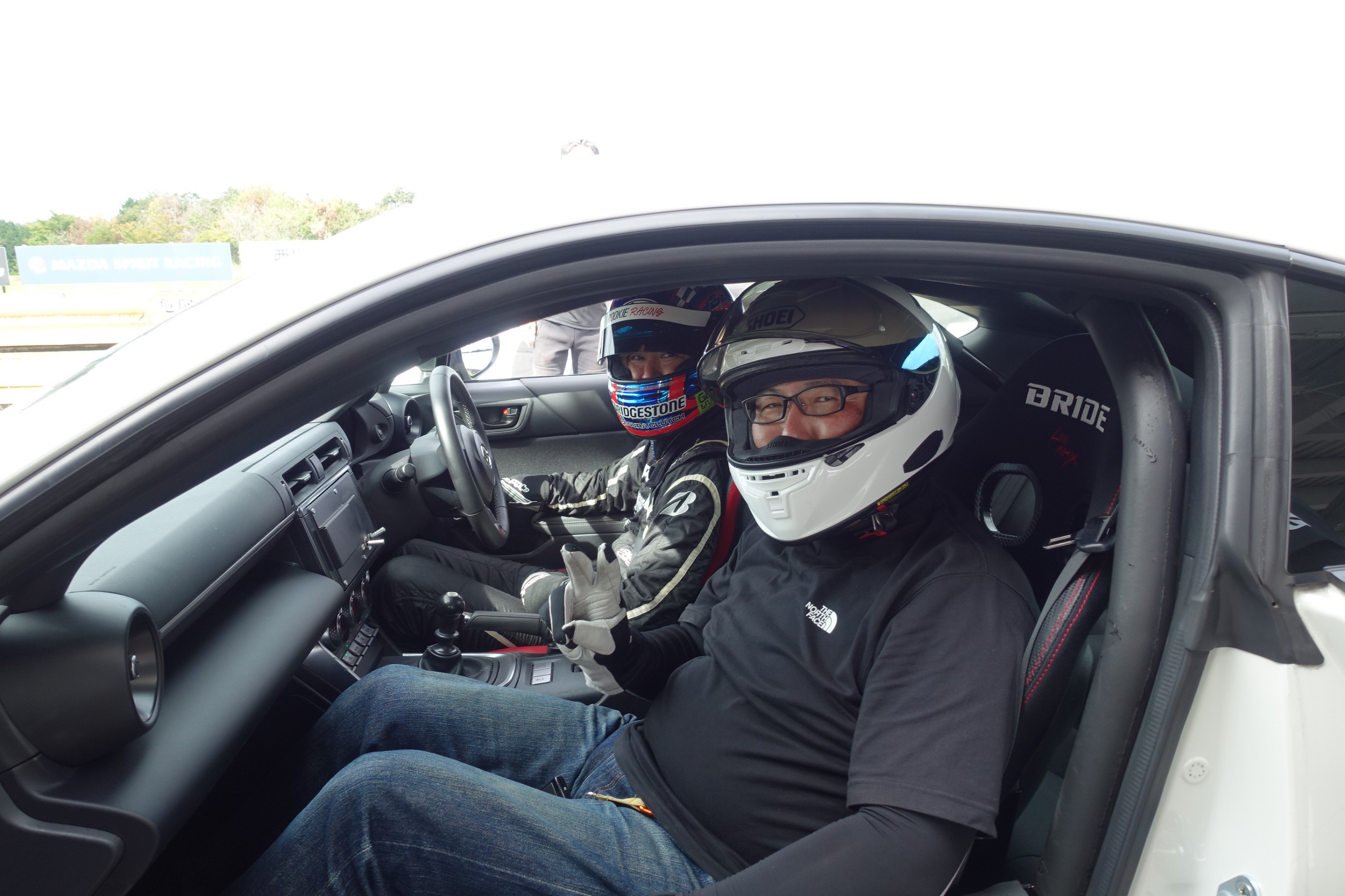プロドライバーが運転するデモカーの助手席に