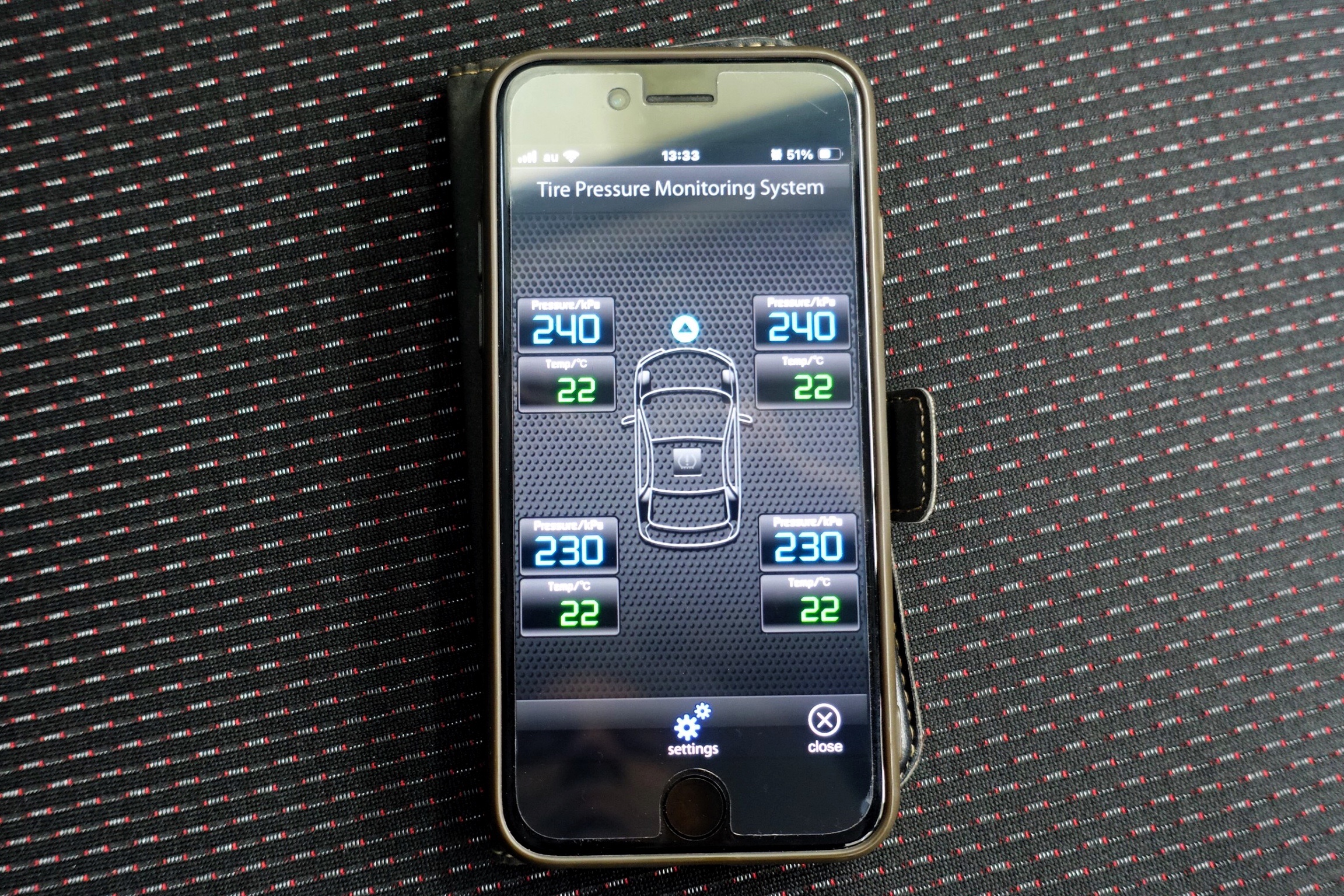 空気圧の状態を色で教えてくれるので